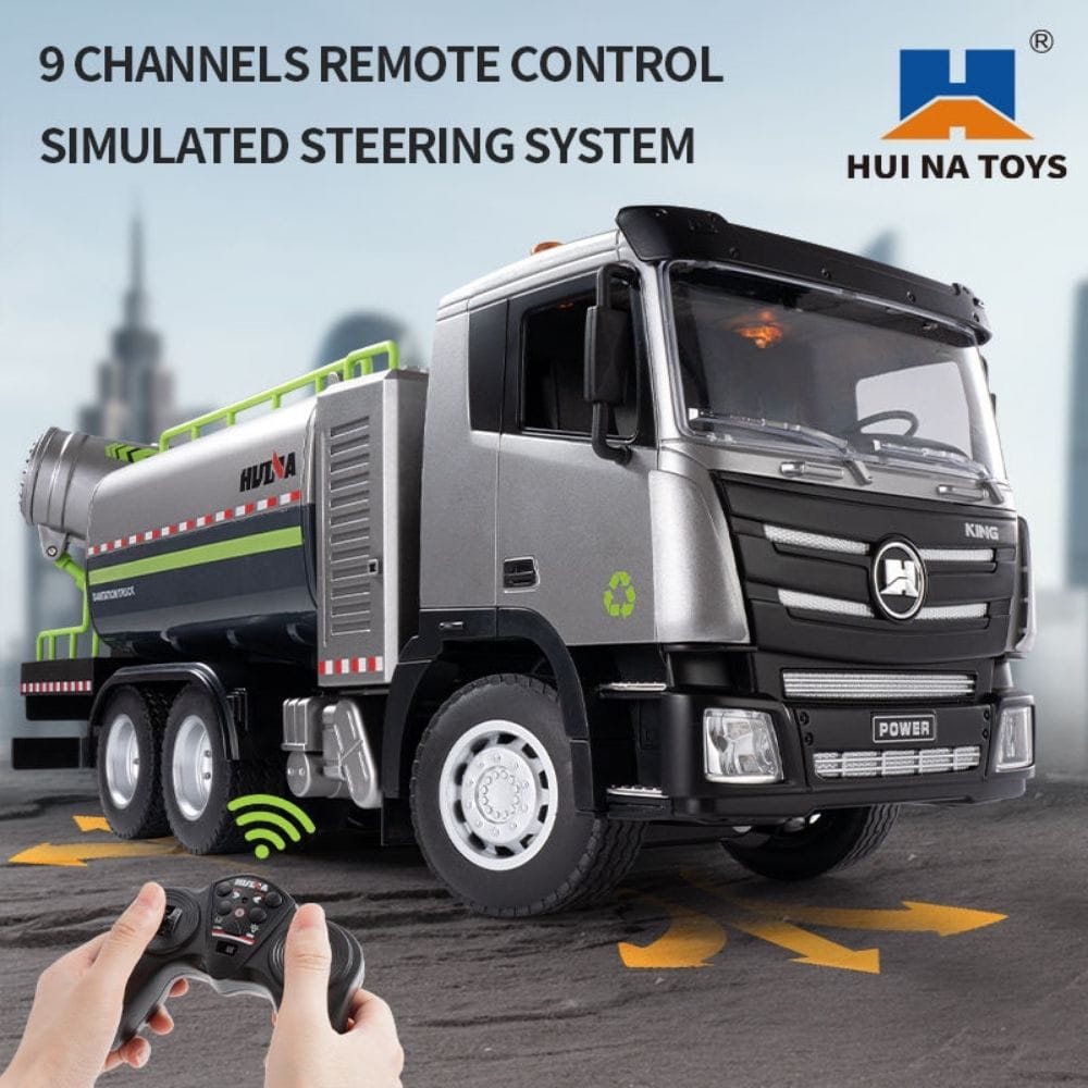 The HUINA 616 RC Fog Car is a realistic 1:18 scale sanitation spray truck designed to simulate dust control and city cleaning operations. Featuring a working water spray system, this RC truck delivers an authentic fog effect for immersive role-play.