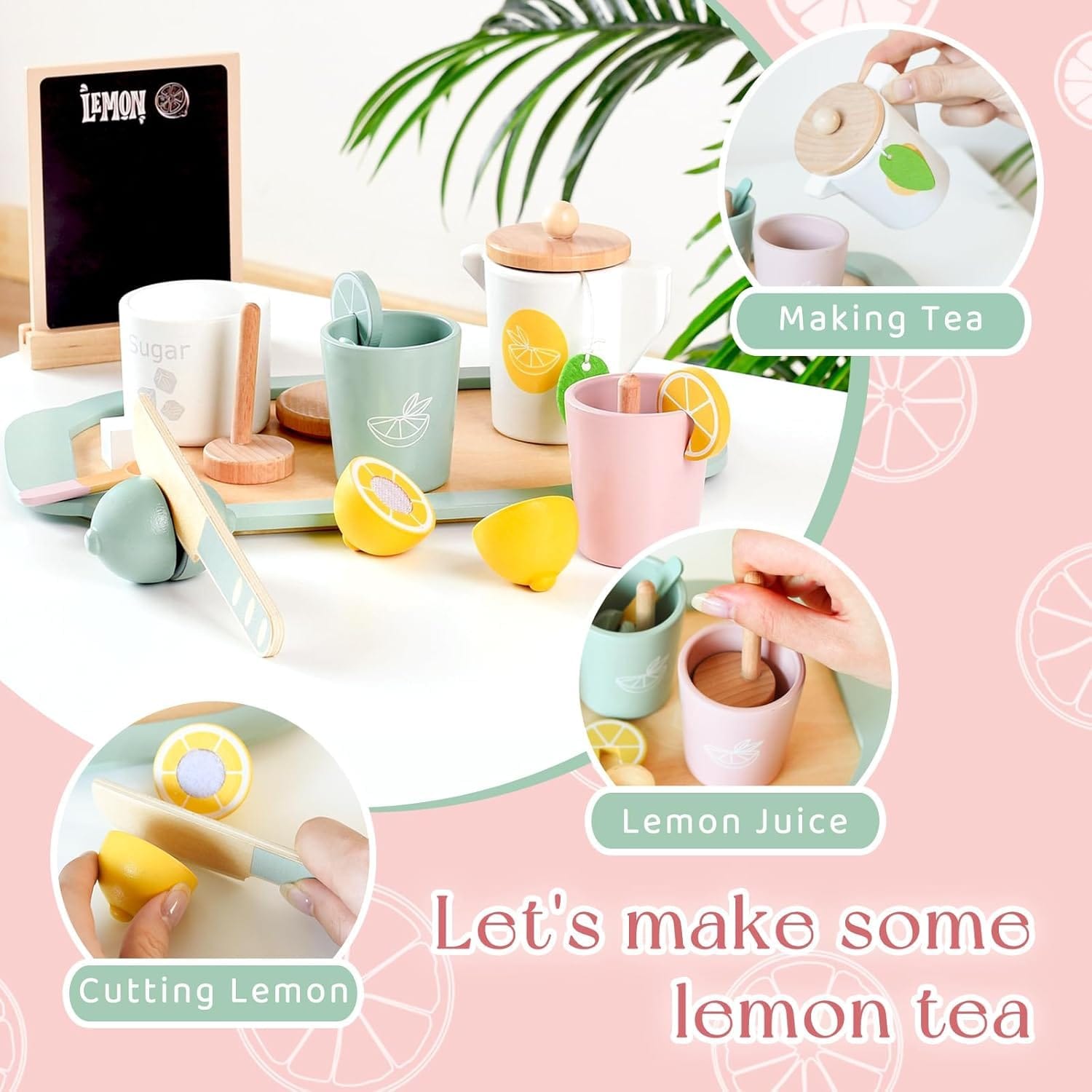 ✔ Lemon-themed wooden tea set