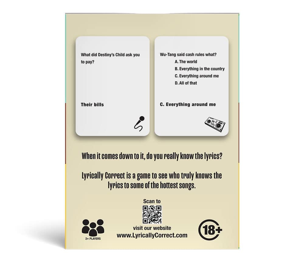 Turn up the nostalgia and test your lyrical skills with Lyrically Correct ’90s & 2000s Music Trivia Card Game – Hip Hop & R&B Edition. From iconic rap verses to smooth R&B hooks, this game challenges players to finish the lyricsbefore anyone else does.