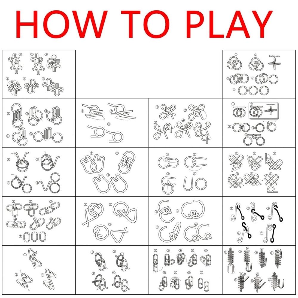 Each puzzle features an interlocking metal wire design that must be separated and reconnected using logic and patience. These classic disentanglement puzzles improve problem-solving skills while providing hours of engaging fun.