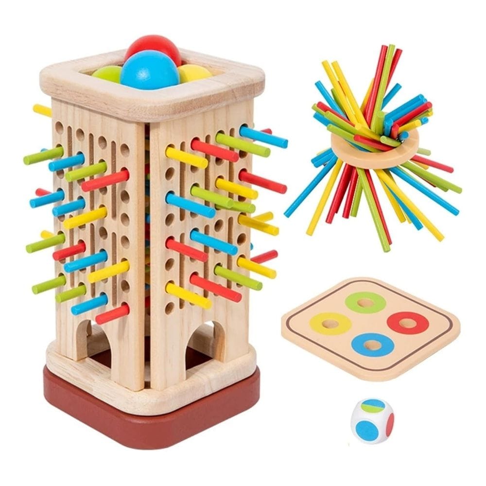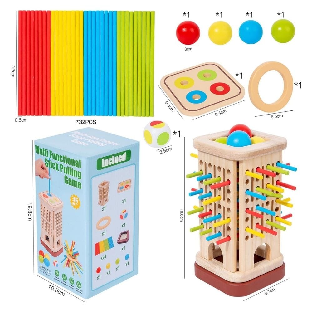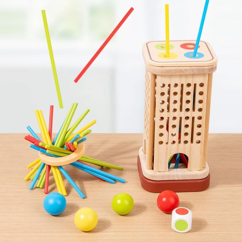 With 32 colourful wooden sticks, a dice, and a sturdy wooden storage box, this game makes learning playful and interactive. Kids carefully pick sticks without disturbing others — building concentration and steady hand control while having fun.