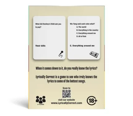 Lyrically Correct ’90s & 2000s Music Trivia Card Game | Hip Hop & R&B Edition | Adults Party Game | 2+ Players | Ages 16+ | 20–30 Mins